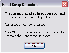 NOTE: You will need to initialize the stage when NanoScope restarts. Click OK in the dialogue that appears.